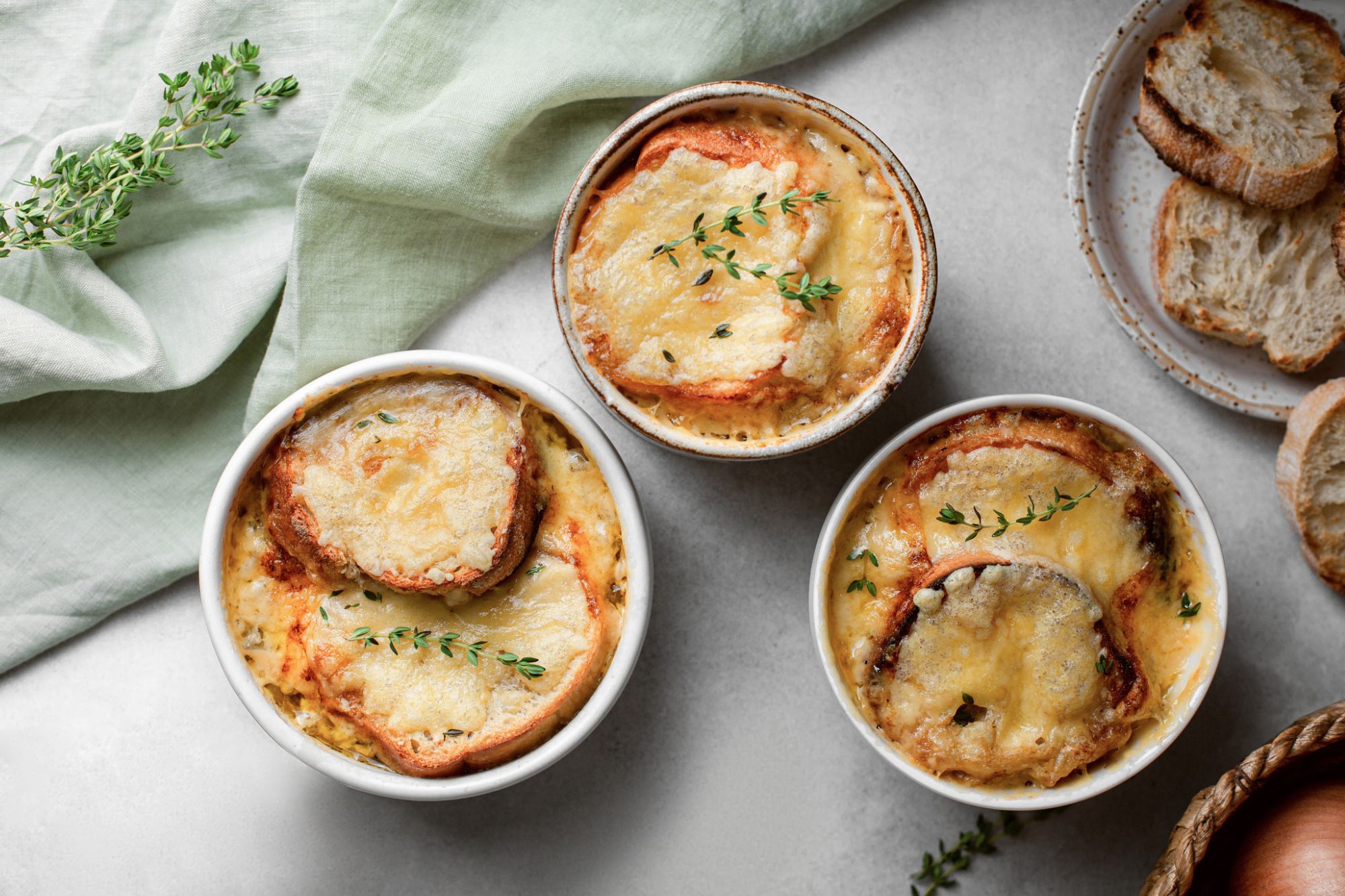 Η κλασική γαλλική εκδοχή, με καραμελωμένα κρεμμύδια, ζωμό βοδινού και μια κρούστα λιωμένου τυριού πάνω σε φρυγανισμένο ψωμί, έγινε σήμα κατατεθέν της παριζιάνικης κουζίνας. Το πιάτο πέρασε τα γαλλικά σύνορα, κερδίζοντας διεθνή φήμη, ιδιαίτερα μετά τον 19ο αιώνα, όταν η γαλλική γαστρονομία θεωρήθηκε το απόλυτο πρότυπο πολυτέλειας και γεύσης.