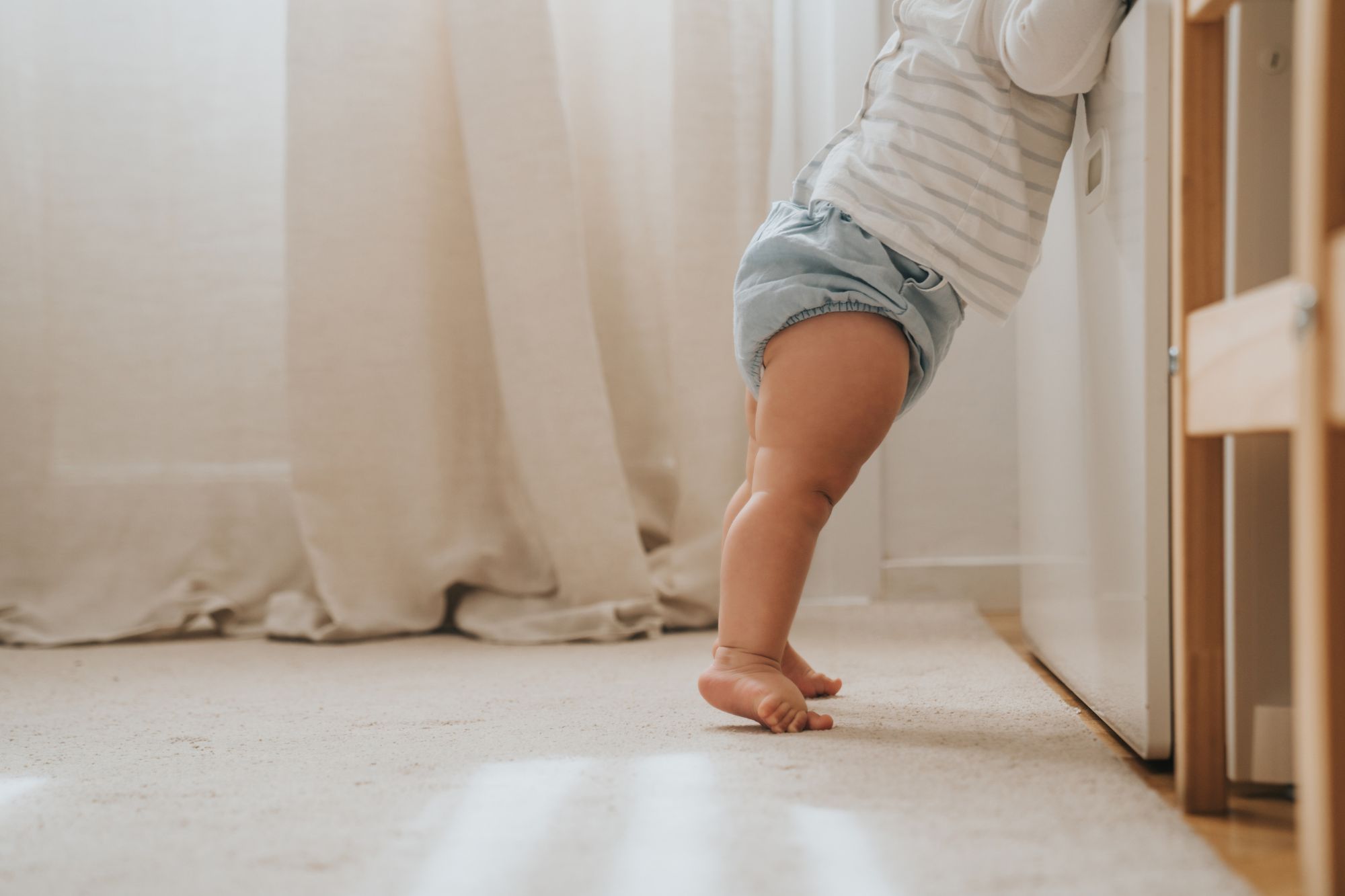 Πολλά μωρά ξεκινούν να μετακινούνται κατά μήκος των επίπλων, μια φάση που συχνά αποκαλείται «περπάτημα με στήριξη». Αυτή η διαδικασία βοηθά το παιδί να αναπτύξει αυτοπεποίθηση και να εξασκήσει την ισορροπία του.